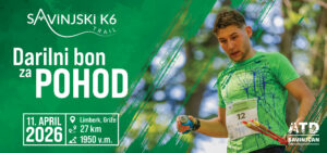 Iščete izvirno darilo za ljubitelje gibanja v naravi? Za dogodek Savinjski K6 Trail 2026 ponujamo darilne bone, ki jih je mogoče kupiti ločeno za Snow Monkey Tek ali Minitec Pohod.